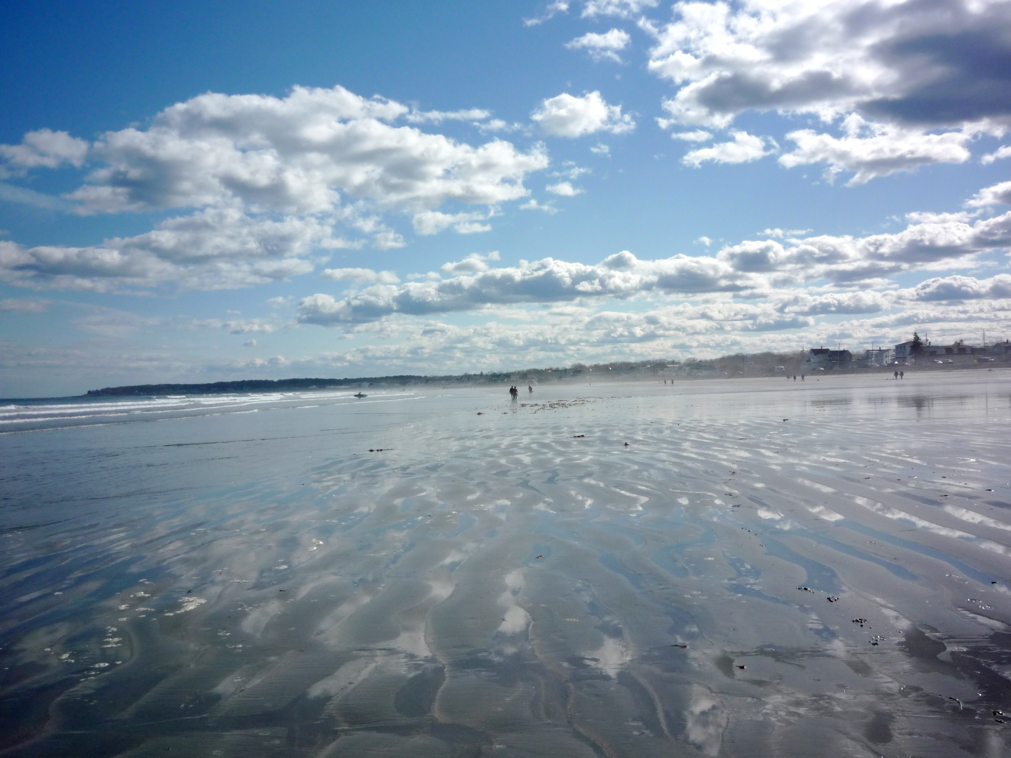 If you’re not much for beach crowds, we suggest waking up early and heading down to Long Sands Beach in York Beach, Maine, on Route 1A, for a peaceful yet refreshing ocean side walk. For just $1 per hour of metered parking, many walk the mile and a half stretch of beach with great waves, views of Nubble Lighthouse and a Down East salt water feeling in the air. The peace and solitude render a wonderful feeling and because of the expanse of beach, you feel like you have the beach to yourself. The sunrises can also be spectacular (see below photo; we recommend clicking to enlarge the photo to get a full appreciation of this scene). What a difference this morning walk is from the crowded summertime scene that arrives just a few hours later!