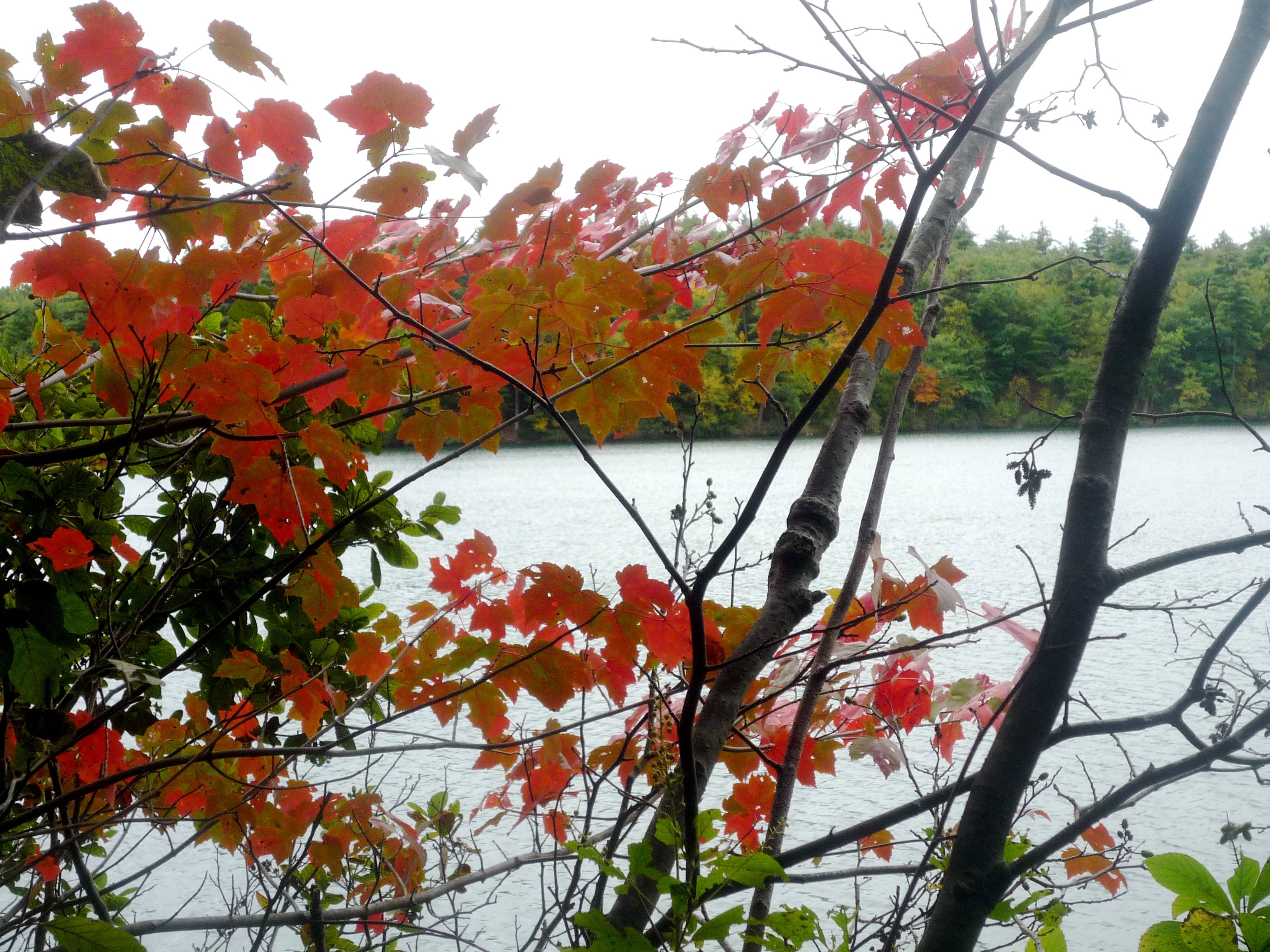 Enjoying fall foliage in October at Walden Pond